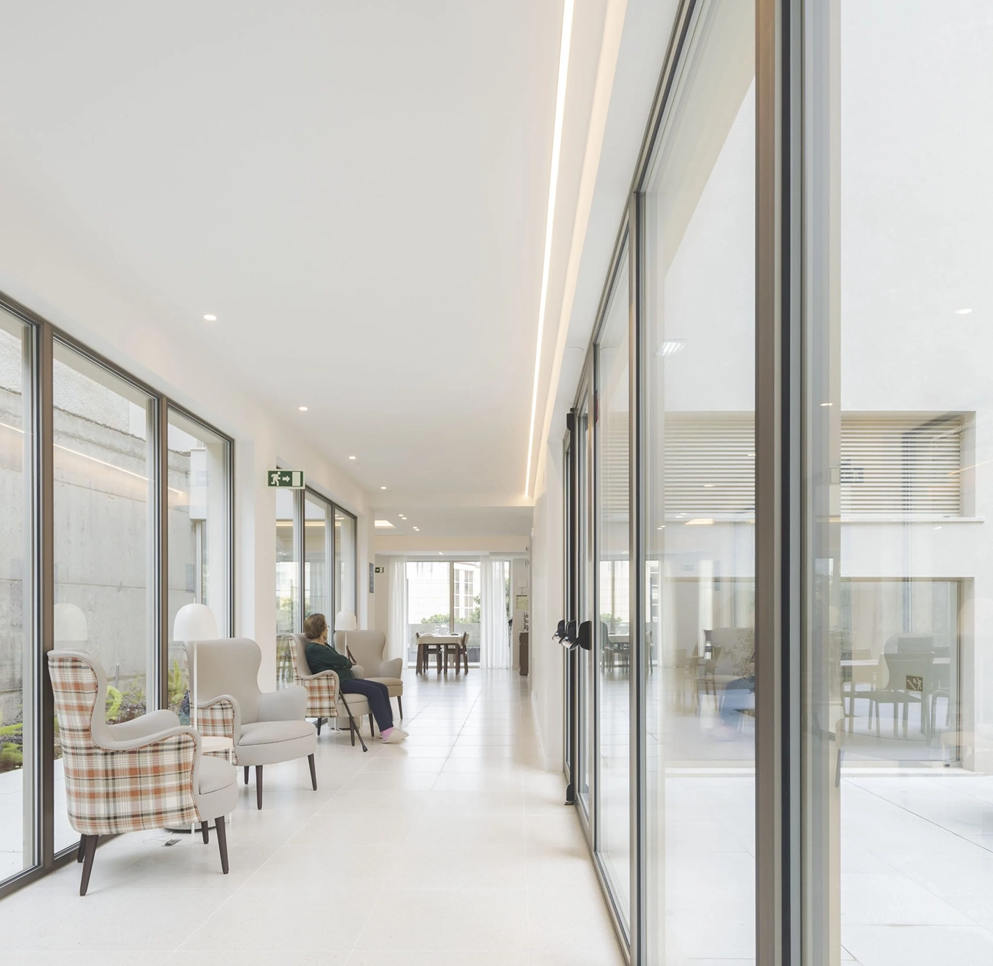 A principal característica da construção foi a procura de luz natural em todas os pisos e espaços, com particular incidência nas áreas comuns e de convívio. A escolha e disposição do mobiliário, ergonomicamente validado, garante o conforto e recria um ambiente com identidade e facilitador da integração de todos.